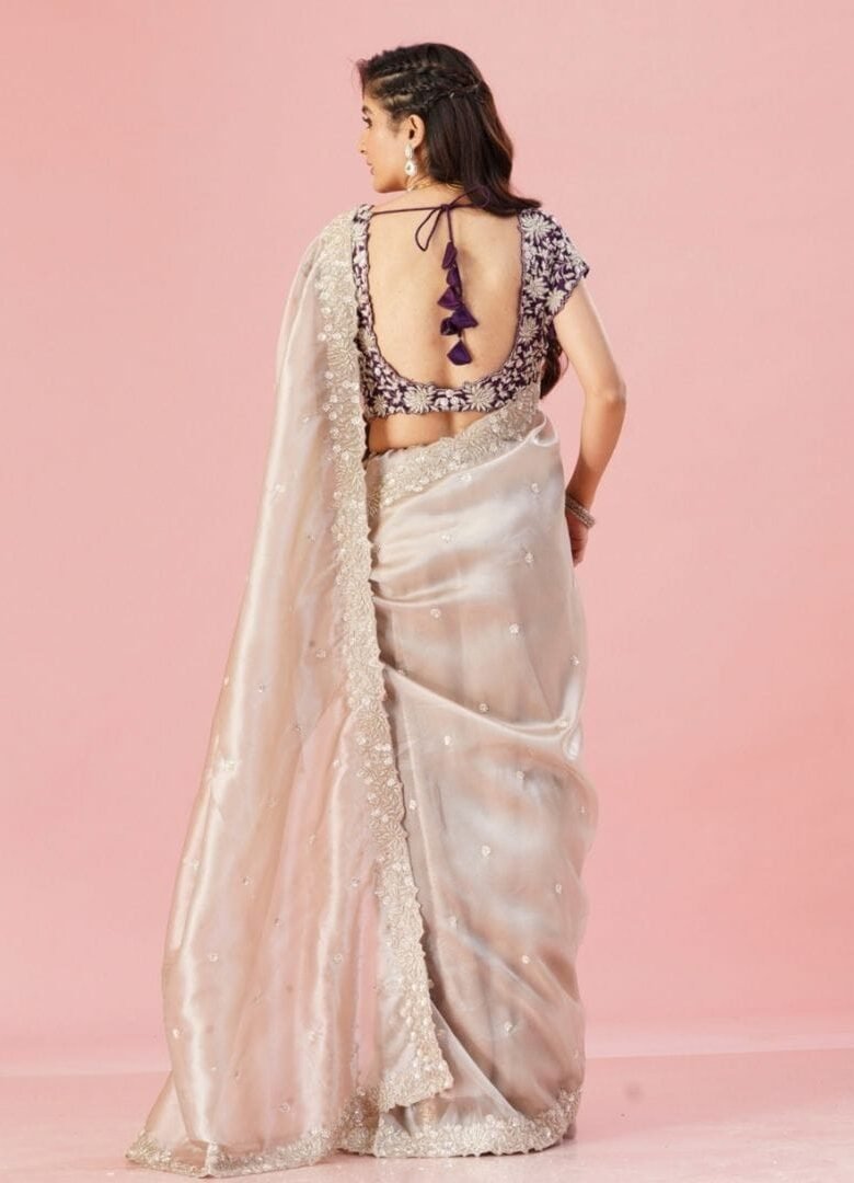 Light gold organza saree