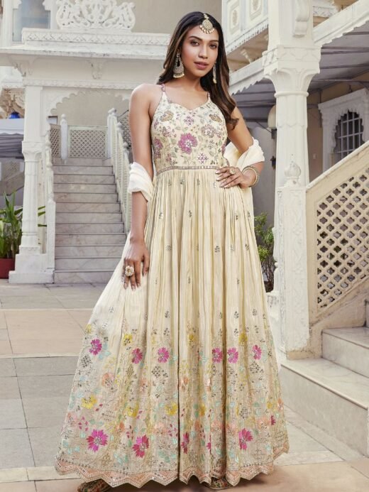 Cream Silk Anarkali Salwar Suit