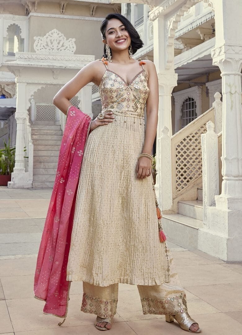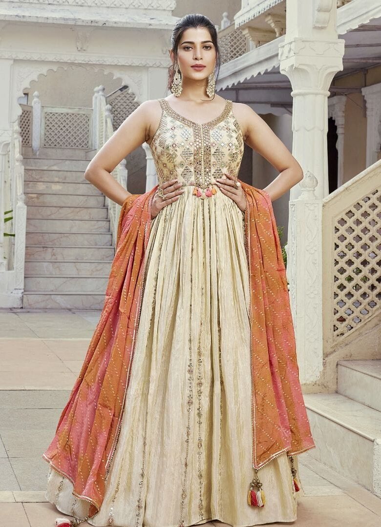 Cream Anarkali Salwar Suit
