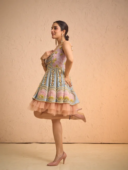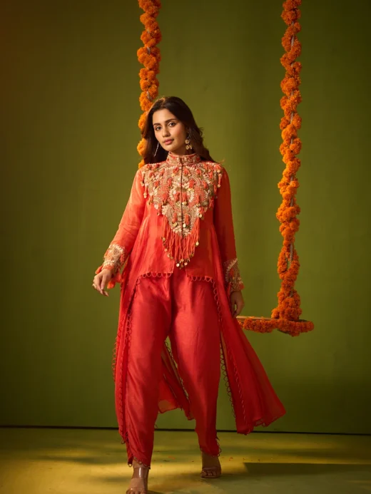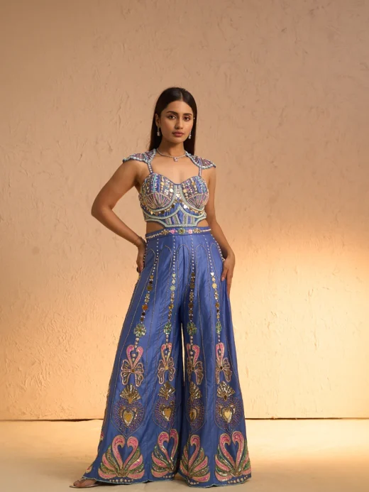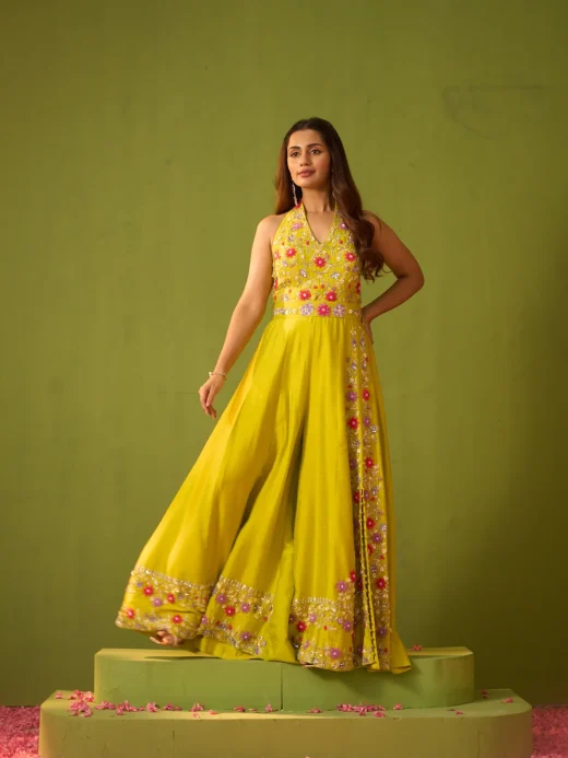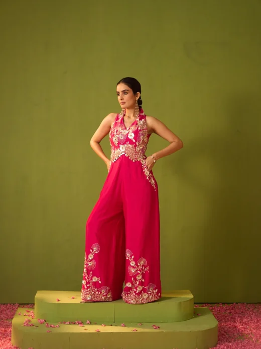 Hot Pink Embroidered Halter Neck Jumpsuit