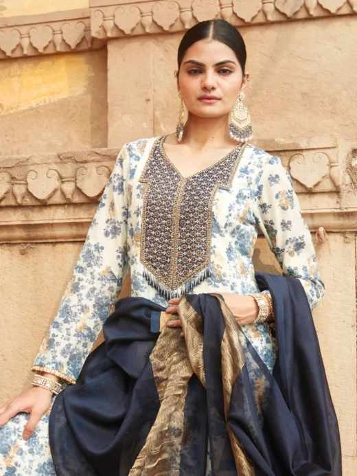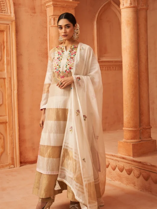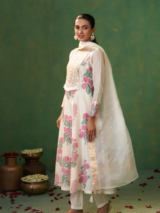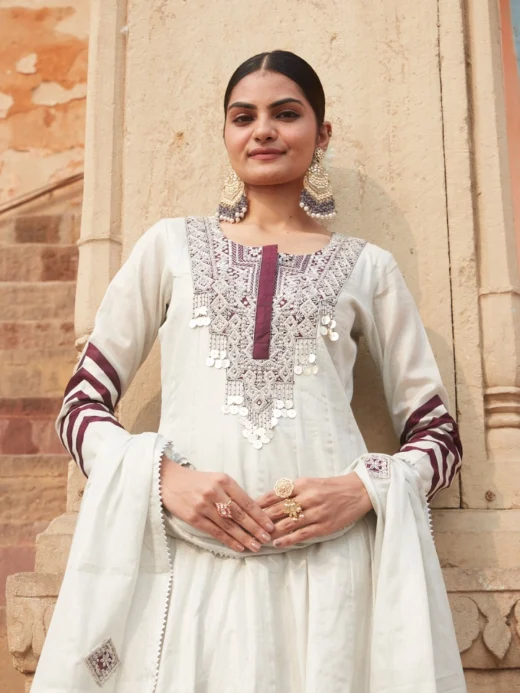 Pure Chanderi & Art Raw Silk Hand Embroideried Kalidaar Set