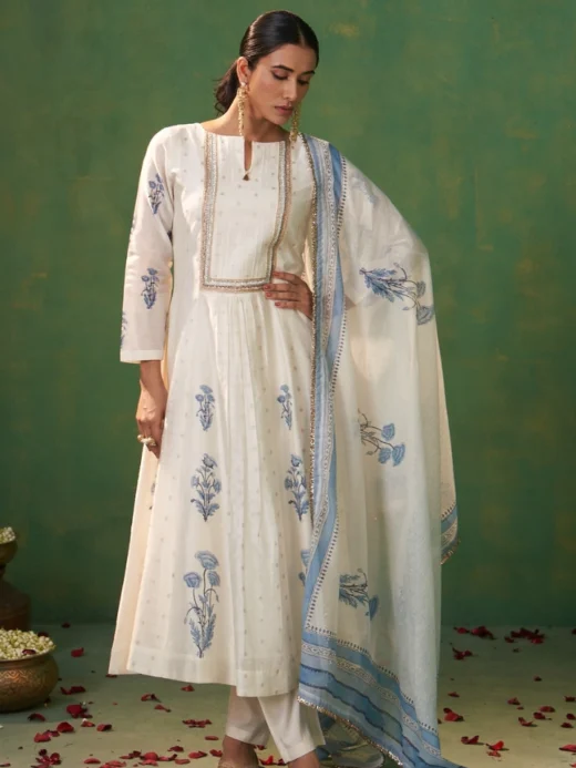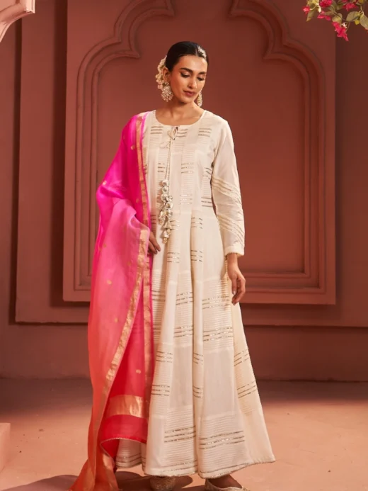 Plain & Polka Pure Zari Chanderi Kalidaar Set