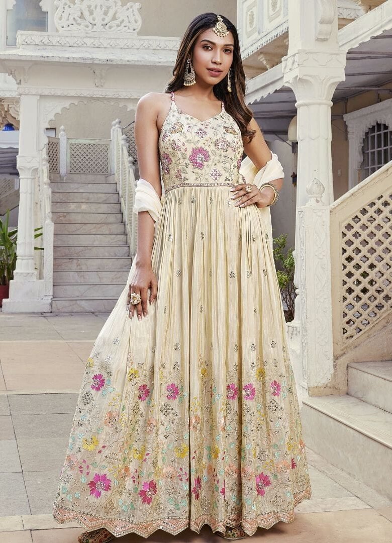 Cream Silk Anarkali Salwar Suit