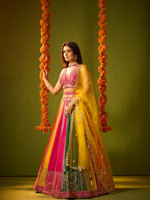 Lavender net skirt hand embroidered and crop top paired with a cape over it