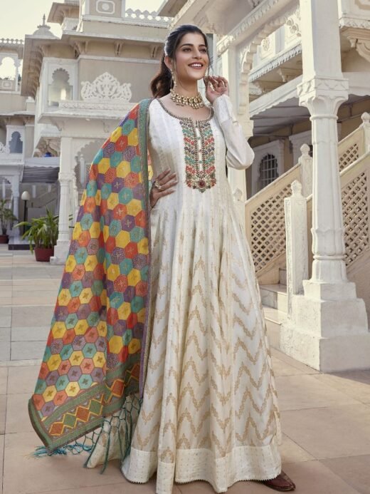 Peacock Green Silk Gown with intricate detailing, perfect for special occasions and stylish events.